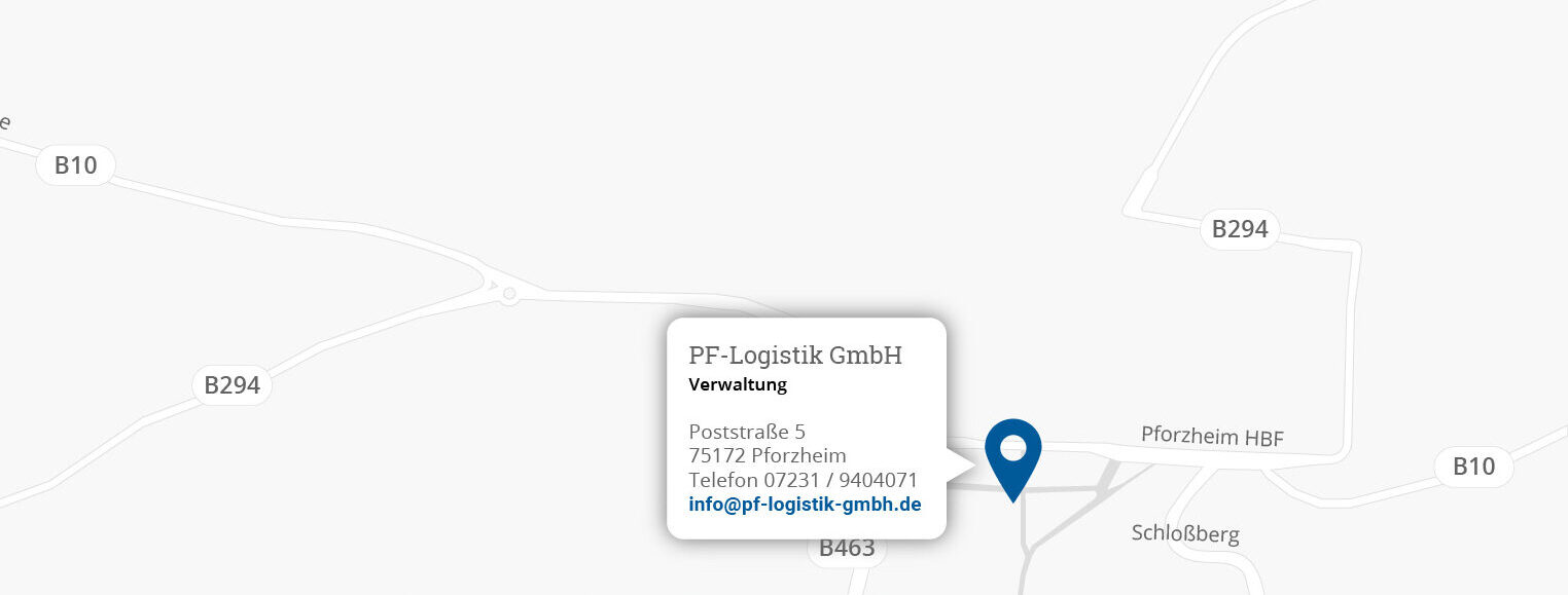 Der Hauptsitz des Unternehmens ist an der Poststraße 5 in Pforzheim. Im Gewerbegebiet Wilferdinger Höhe liegt das Außenlager von PF-Logistik und bietet mit der nahen A8-Anschlussstelle und der B10 eine optimale Verkehrsanbindung. Das Lager mit einer Fläche von 600 m² kann bei Platzbedarf von Kunden gemietet werden.